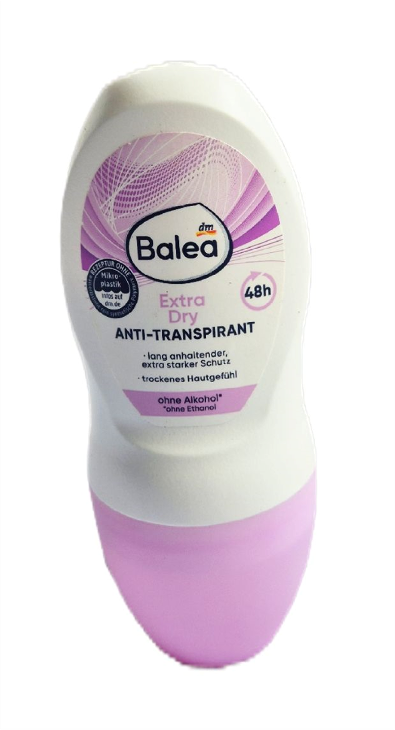 Balea Extra Dry Anti-Transpirant Roll-On provides long-lasting, extra-strong protection against sweat and body odor for up to 48 hours. Designed to keep underarms dry and comfortable, it delivers a dry skin feel while being gentle enough for daily use